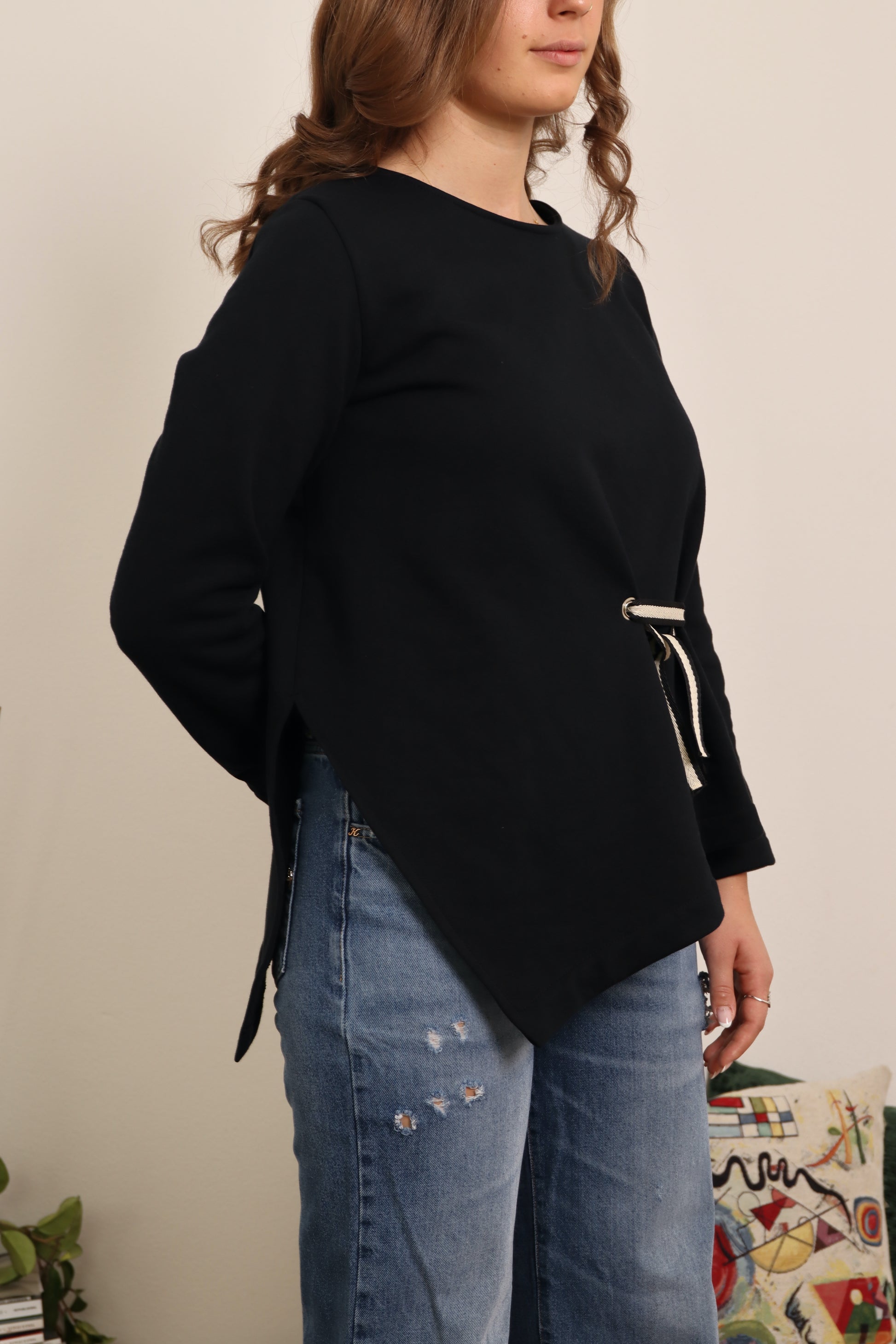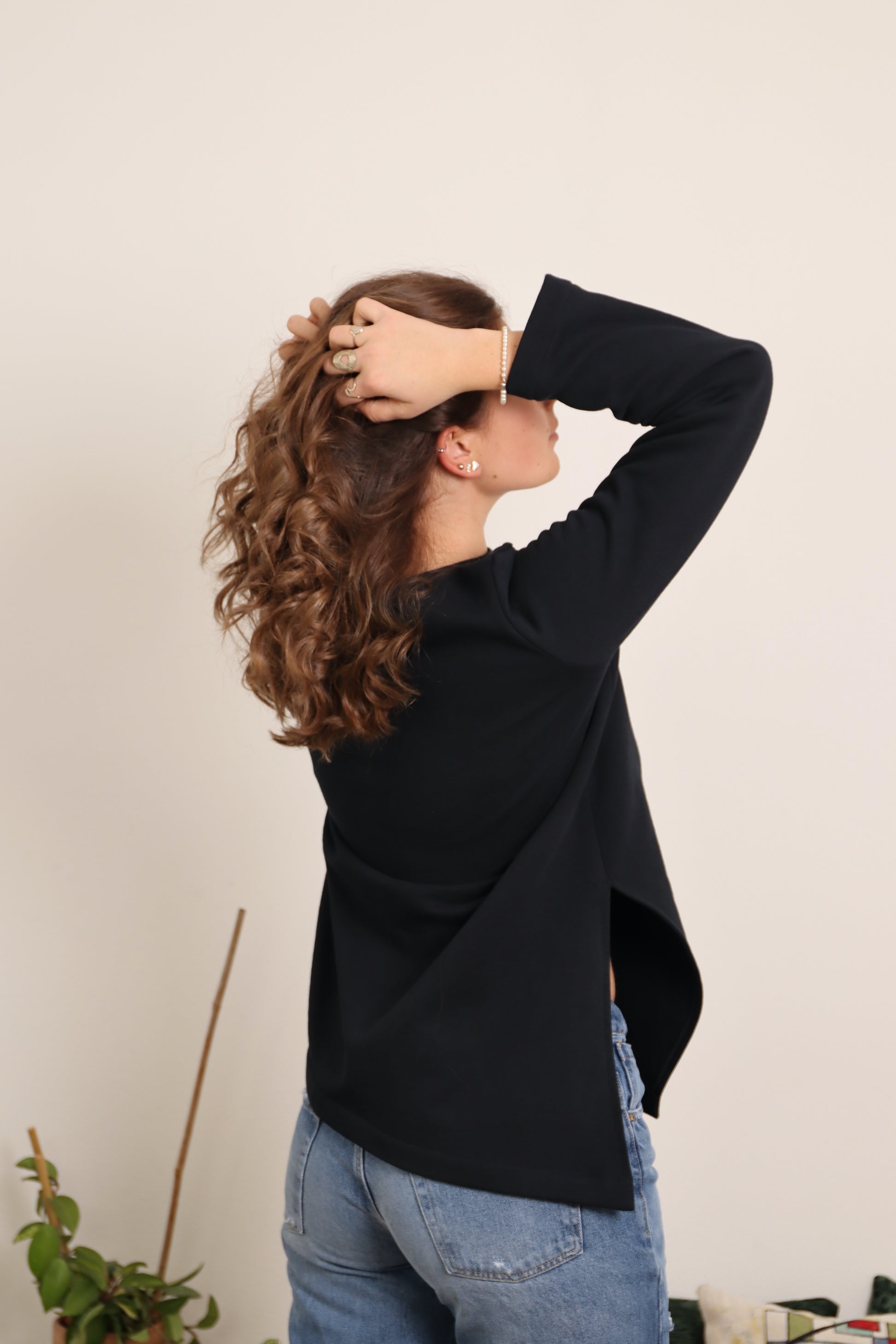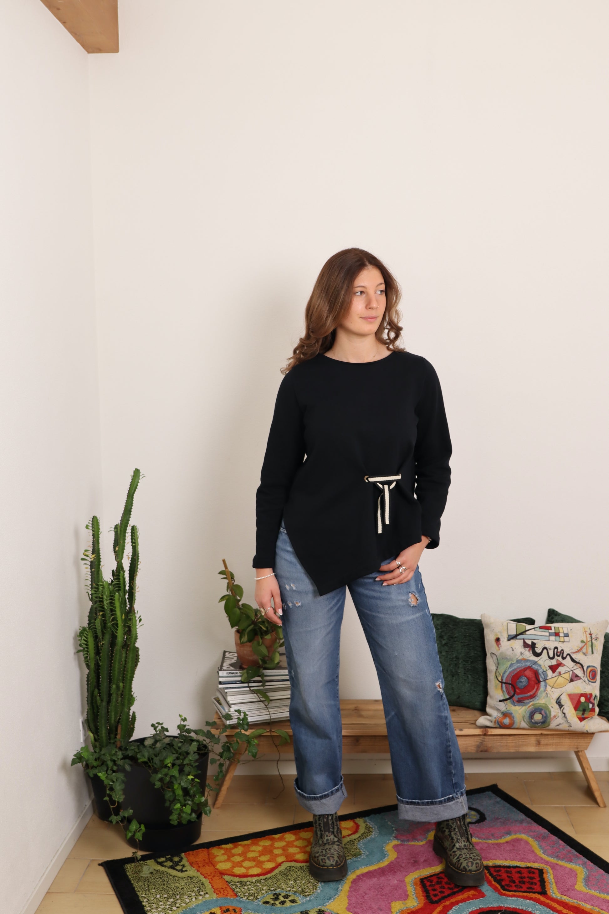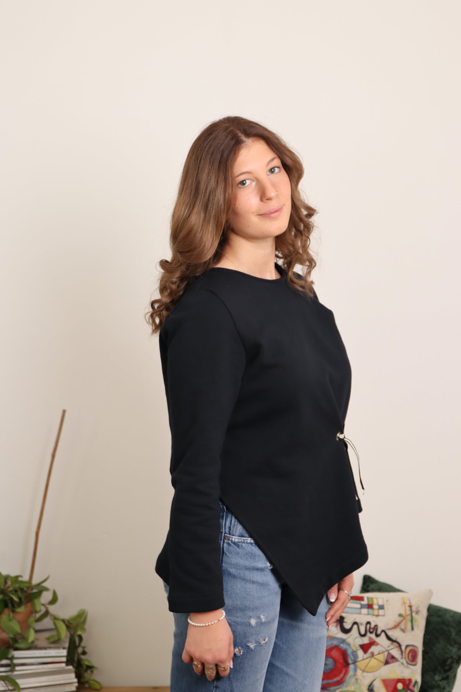 La felpa N.1 è ciò che ti serve quando hai voglia di un outfit comodo, caldo, ma non necessariamente bracalone: cozy chic! Con un jeans, un pantalone palazzo, un tubino midi o proprio i Comfy Pants di questa collezione il look non passerà innosservato, grazie ai dettagli che caratterizzano questo capo: il taglio asimmetrico e gli occhielli in metallo uniti da un nastro di cotone spinato rendono la felpa N.1 originale nonostante la sua semplicità.